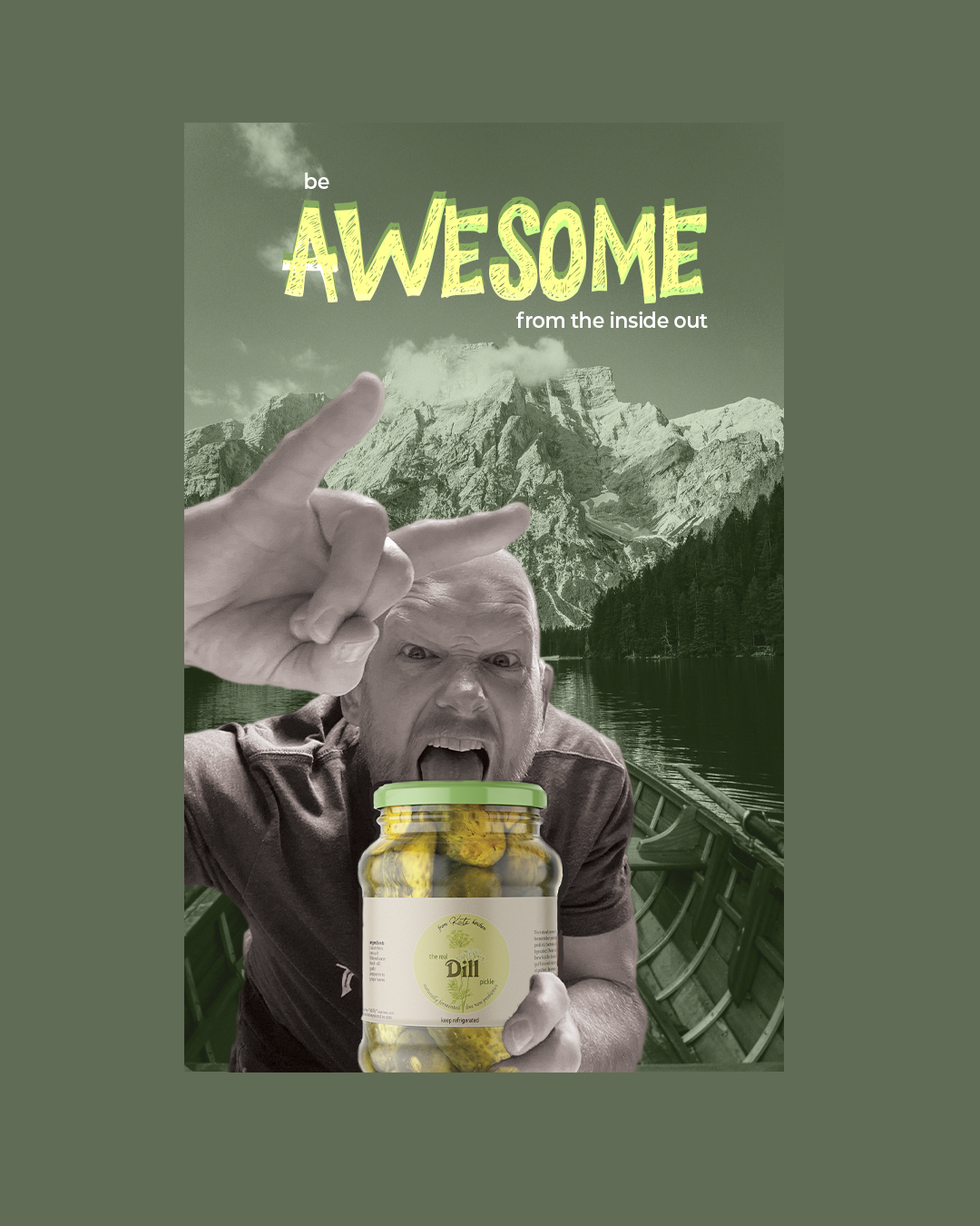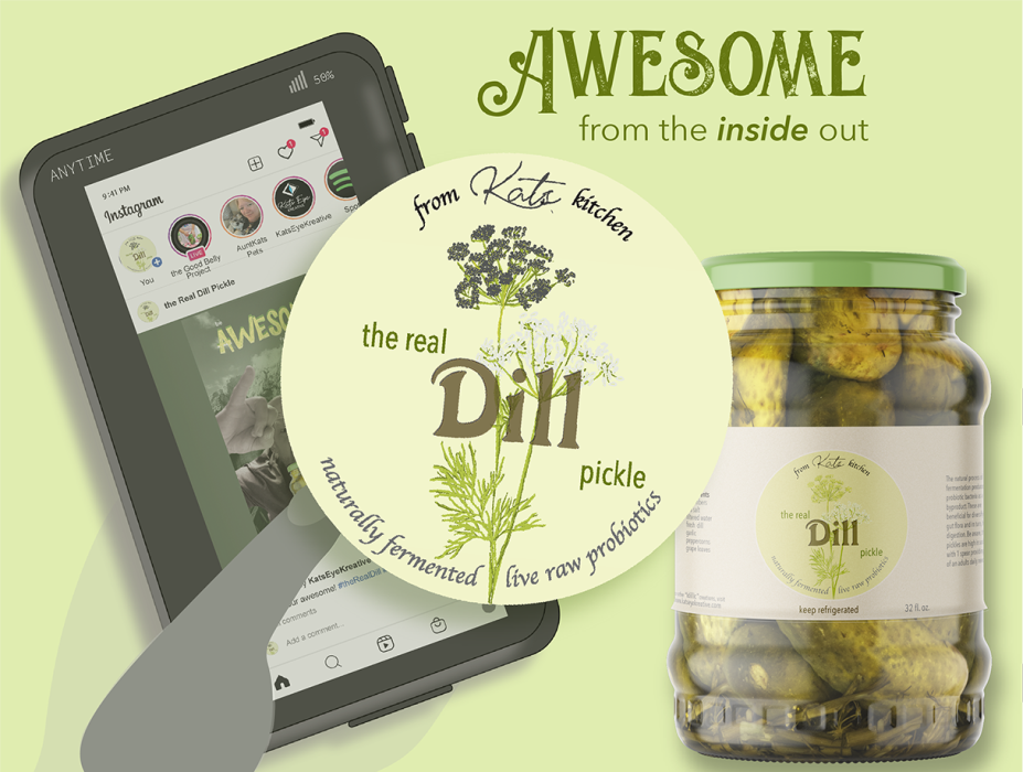 A brand should reflect the focus and personality of the company it represents. The real Dill pickle brand was developed as an interest of mine. I actually make them! Through brainstorming I developed a name, created an illustration for my labels and chose my main colors based on market research and my target audience.